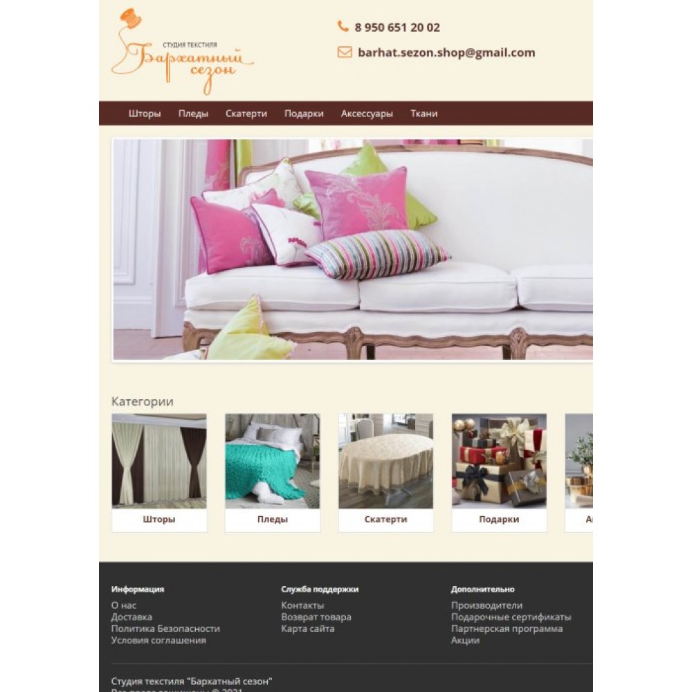 Интернет-магазин студии текстиля "Бархатный сезон" от веб-студии Максвебсайт г. Алапаевск