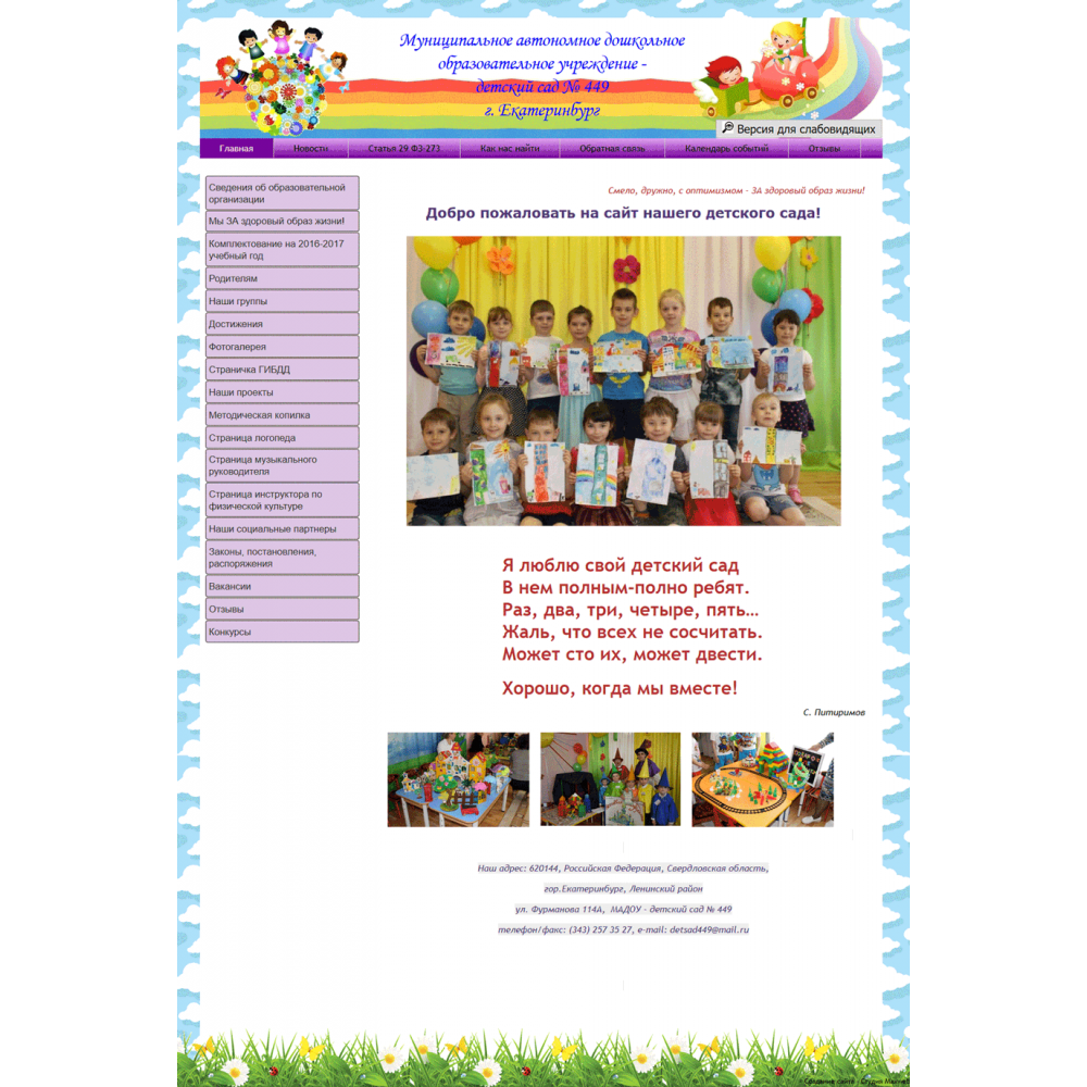 Сайт муниципального детского сада г.Екатеринбург от веб-студии Максвебсайт г. Алапаевск