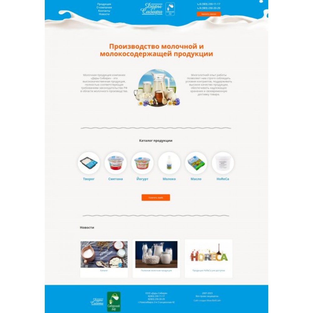 Сайт производителя молочной продукции от веб-студии Максвебсайт г. Алапаевск